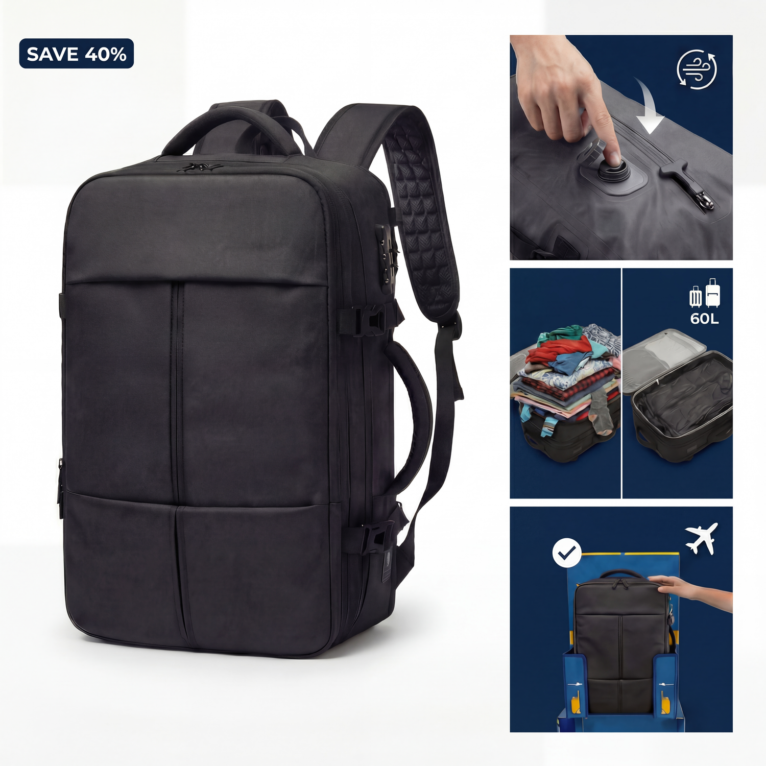 Built-in vacuum compression packs 50% more in the same carry-on space.